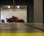The vehicle’s aircraft-quality carbon fiber body sits atop large lattice-structure center-lock wheels. The interior design reflects the company’s progressive design philosophy and features carbon-fiber-reinforced racing seats, dual-grained leather surfacing throughout the cockpit and tasteful chrome appointments.