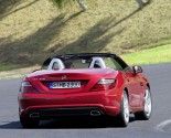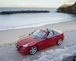 The next model that has been christened SLK 250 BlueEfficiency and has the engine tuned to deliver 204 hp. Acceleration factor for this version reads at 6.6 seconds for the zero to 100 kmph or 62 mph run. Top speed of this model is 243 kmph or 151 mph. Fuel consumption pattern of this car is 6.2 liter per 100 km or 38 US mpg and therefore can be seen to be much the same as the other model.