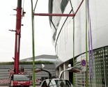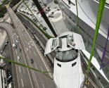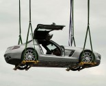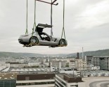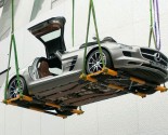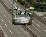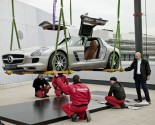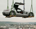 Yesterday this modern day Gullwing was raised to the roof terrace(42 meters / 137.8 ft) of the Mercedes-Benz Museum. Normally the roof terrace is not open to visitors.