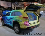 Toyota has recently unveiled the SpongeBob Highlander Tanked Edition at SEMA. Essentially a mobile aquarium, the Highlander has been equipped with an 800 gallon (3028 liter) tank that was custom designed by Tanked stars Wayde King and Brett Raymer.